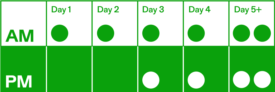Day 5+: Take two capsules twice daily, one hour before meals.